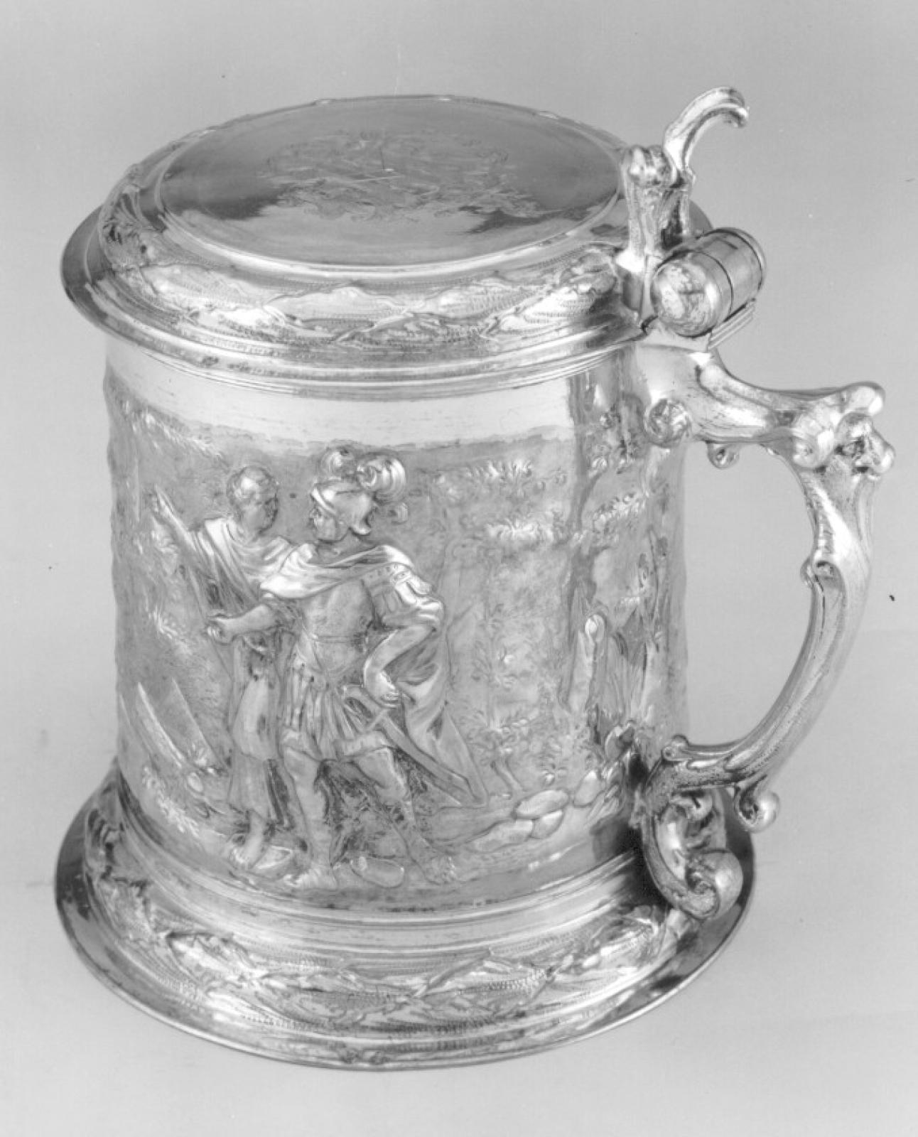Au cours du XVIIᵉ siècle, les villes hanséatiques de la Baltique, notamment Dantzig et Lübeck, connaissent une intense production d’orfèvrerie en argent et en vermeil, reflet de leur grande prospérité commerciale. Parmi ces réalisations figurent de nombreuses chopes couvertes, emblématiques de cette région.